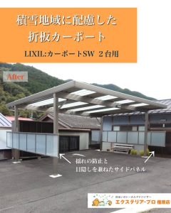 雪や天候の影響を受けやすく、車の出し入れや駐車時に不安を感じていたところ、内窓のご相談をきっかけにカーポートも設置することに。
